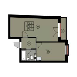 Однокомнатные апартаменты в комплексе апартаментов OTRADA RESORT на побережье Балтийского моря. Калининградская область, Светлогорский р-н, пос. Лесное. 18.1 — прихожая 4,6 м² 18.2 — кухня-столовая 15,1 м² 18.3 — жилая комната 28,8 м² 18.4 — санузел 4,3 м² 18.5 — лоджия 3,4 м² Общая площадь апартаментов: 56,2 м²
