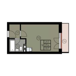 Общая площадь апартаментов: 33,5 м²
