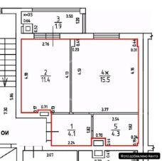 Общая площадь квартиры 37.2 кв.м. , кухня 11.4 кв.м. с выходом на лоджию , жилая комната 15.5 кв.м. , совмещенная ванная комната 4.3 кв.м. , прихожая 4.1 кв.м. Высота потолков 2.7 м, окна выходят во двор.