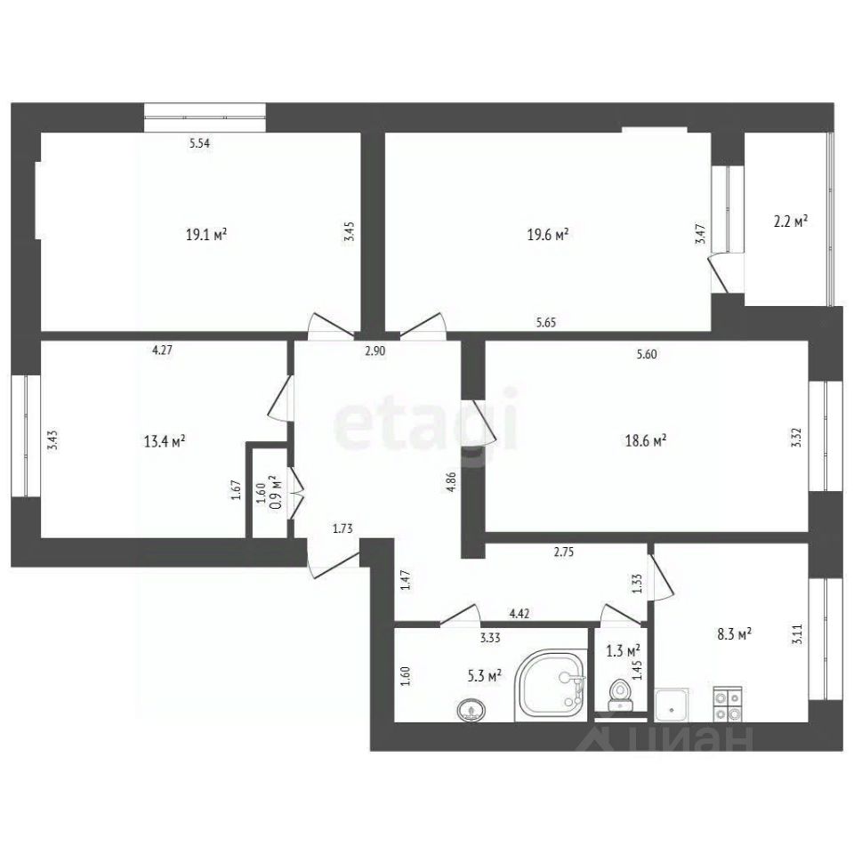 Площадь: 102.3 кв.м. — редкость для центра в этом классе домов. Просторная прихожая, кухня с полным комплектом техники, четыре изолированные комнаты (гостиная, мастер-спальня, кабинет и детская/свободная комната).