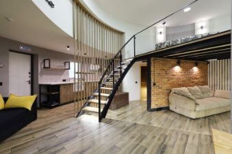 Эти двухуровневые апартаменты с впечатляющей высотой потолков в 4 метра создают ощущение невероятного простора и свободы.