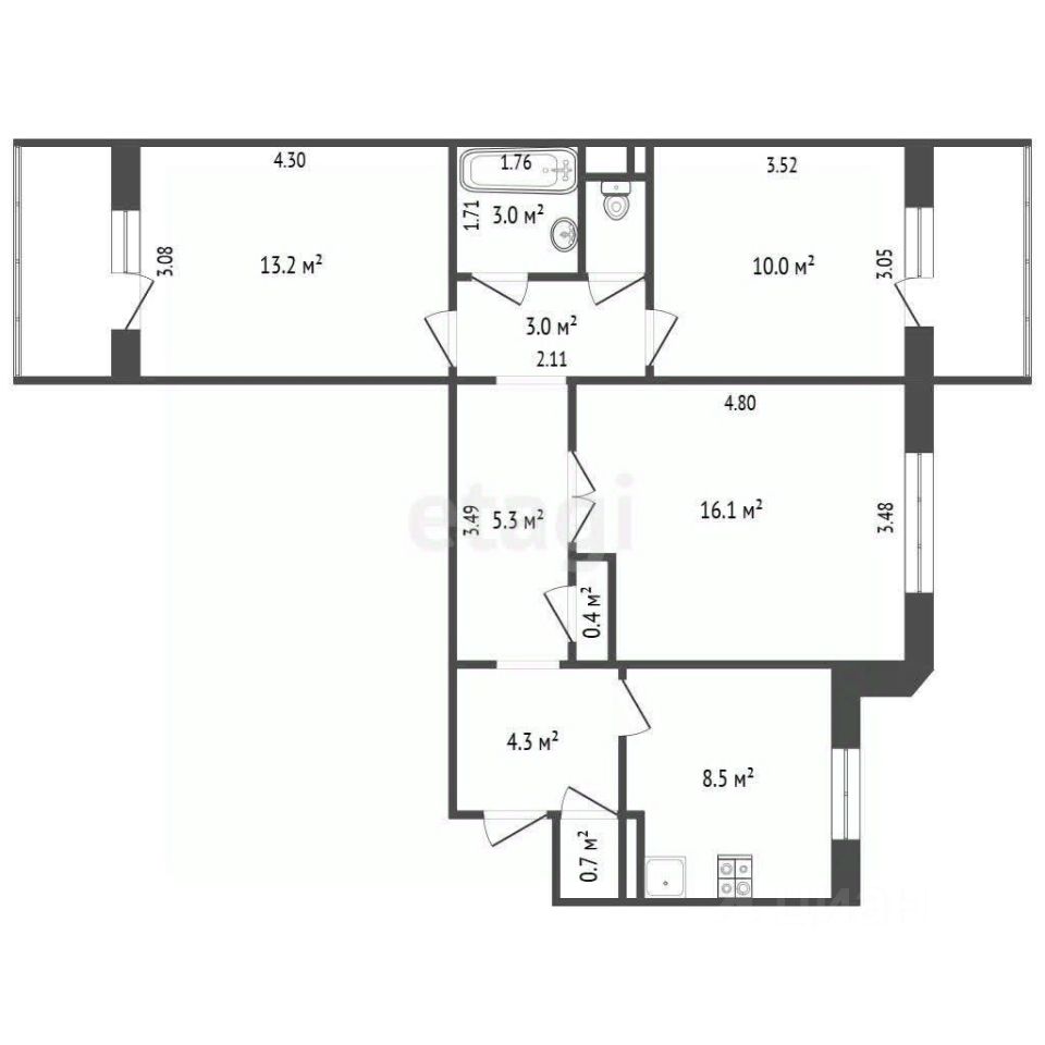 Идеальная планировка для семьи: 3 изолированные комнаты (44 кв. м жилой площади) дают каждому личное пространство, а светлая кухня 8.5 кв. м станет сердцем вашего дома. Целых 2 лоджии - для завтраков на солнце и вечернего отдыха.