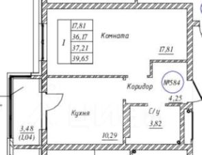 Комната 17,8 кв.м с большой нишей (можно поставить кровать или сделать гардеробную.