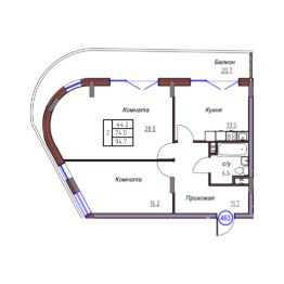 Жилая площадь44,2 м²
