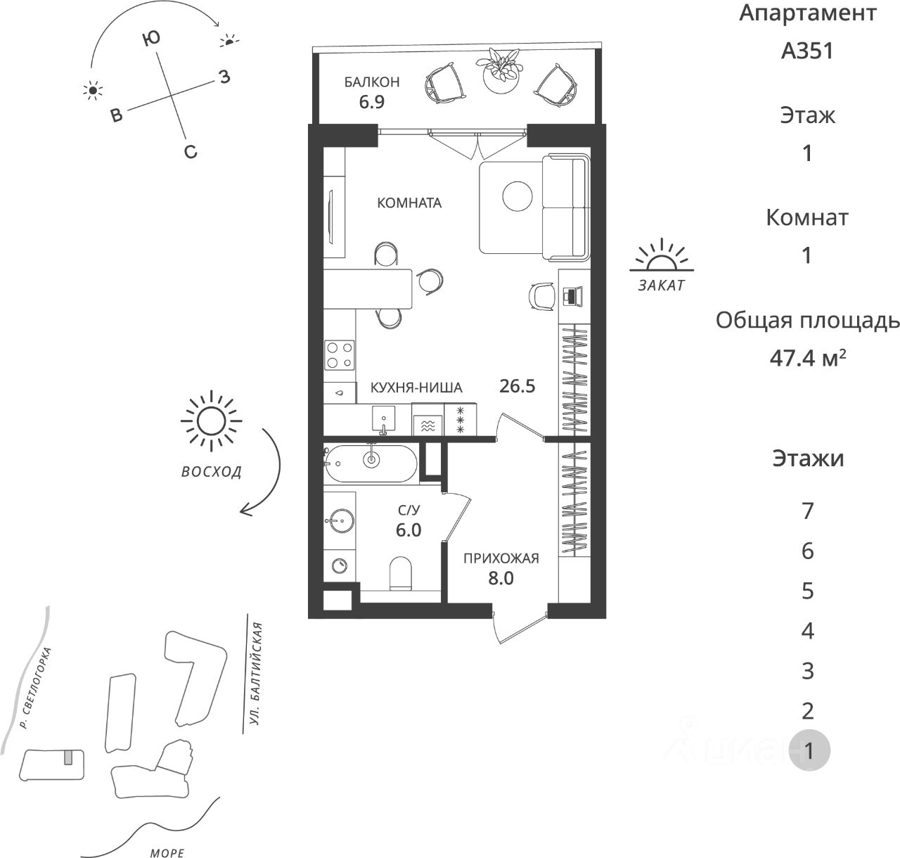 Балтийская Резорт — новый гостиничный комплекс премиального формата в Светлогорске, созданный для тех, кто выбирает жизнь у моря без компромиссов или инвестиции с быстрой окупаемостью. А может быть все сразу. Первый в Светлогорске прямой и комфортный спуск к морю, без перепадов высоты, для тех, кто не любит кардио нагрузки и лестницы. Собственная экосистема сервиса — здесь каждый день напоминает об отдыхе, даже если вы приехали всего на выходные. Главная особенность комплекса — масштабная инфраструктура уровня курорта. Первое место в Светлогорске где можно задержаться до полуночи. В составе Балтийская Резорт: • Флагманский СПА-комплекс от создателей "Баден Аква СПА" с бассейном и зонами релакса • Современный фитнес-центр • Бильярд, караоке и ресторан — центр притяжения для отдыха и встреч • Уютные зоны для работы • Прачечная, супермаркет, салон красоты, сервисная компания • ЗАГС и площадки для церемоний в парке, у моря и на кровле • Подземный паркинг, охрана, видеонаблюдение Жить в Балтийская Резорт — значит иметь собственный мир у моря, где быт решается автоматически, а время принадлежит вам. Инвестиционная привлекательность. Балтийская Резорт — это не только премиальный уровень жизни, но и сильная инвестиционная модель: • Проект расположен в топовой туристической зоне Светлогорска — высокий стабильный спрос на аренду круглый год. • Апартаменты могут передаваться в управление — полностью пассивный доход без вашего участия. • Капитализация проекта по прогнозам — 130%+ к вводу в эксплуатацию. • Стартовая цена существенно ниже будущей рыночной стоимости — редкая возможность зайти "на старте" в один из самых сильных проектов региона. Качество и стандарты: • Потолки 3 метра, большие окна, продуманная архитектура • Апартаменты в отделке White box в подарок и возможностью передачи в управление • Собственная управляющая компания и сервис под ключ • ДДУ, ФЗ-214 • Ипотека, рассрочка, 100% оплата Звоните — проведём презентацию, подберём планировку и рассчитаем инвестиционный потенциал вашей покупки. Проектная декларация размещена на сайте наш.дом.рф Предложение ограничено. *Не является публичной офертой. Указанные цифры являются прогнозными. Расчет выполнен по состоянию на декабрь 2025. Реальная доходность может отличаться от расчетной и зависит от множества факторов, включая рыночную конъюнктуру, расходы на содержание объекта (налоги, ремонт, коммунальные платежи), а также возможные периоды простоя. Данный расчет не является гарантированным и не представляет собой финансовую рекомендацию.