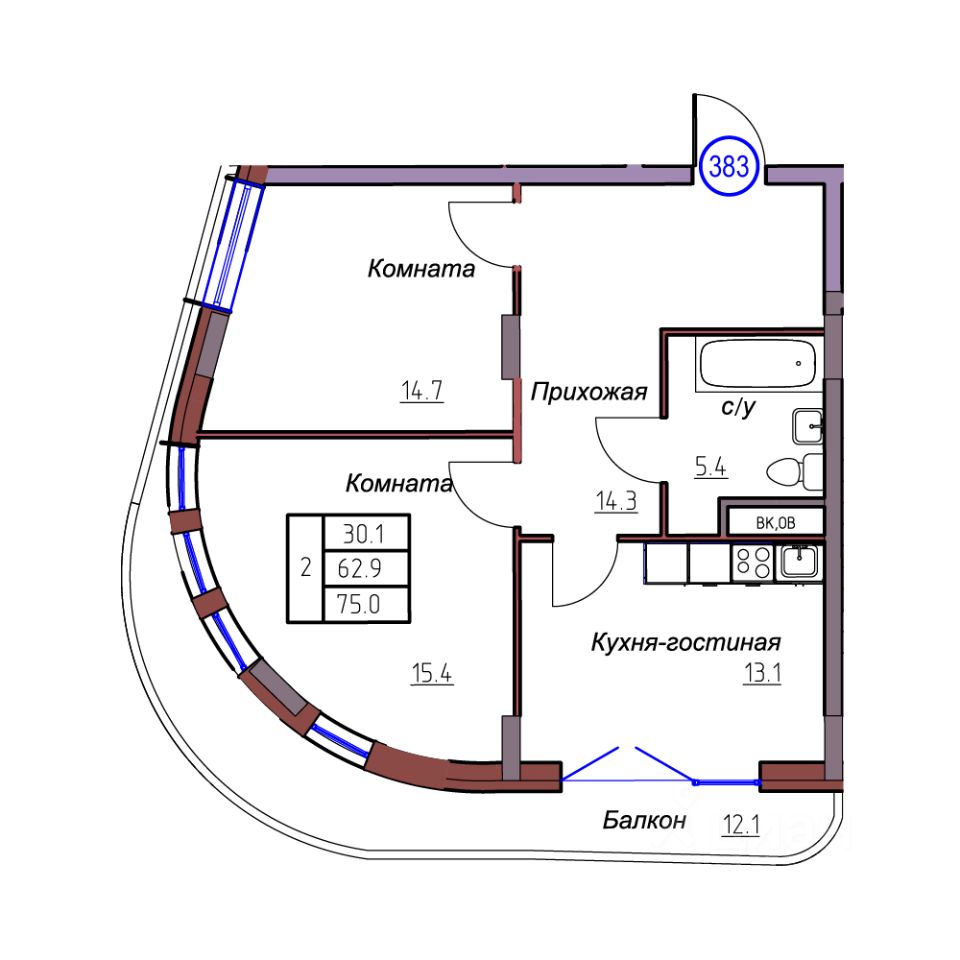 Общая площадь75 м²