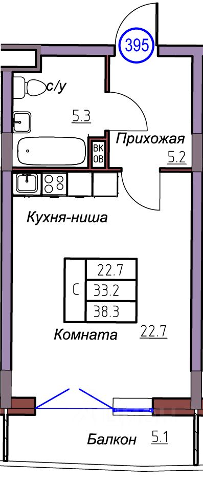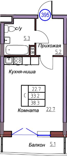 Общая площадь38,3 м²