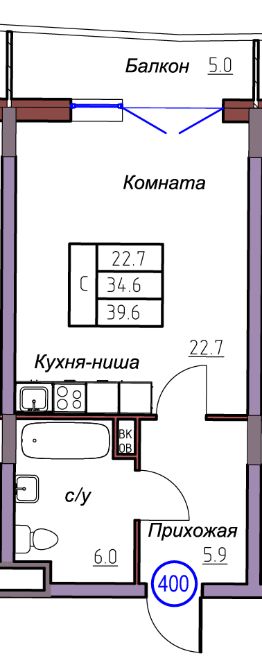 Общая площадь39,6 м²