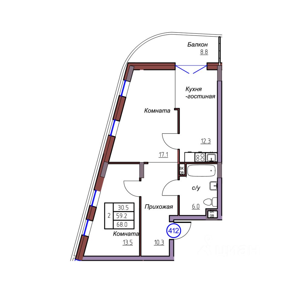 Общая площадь68 м²