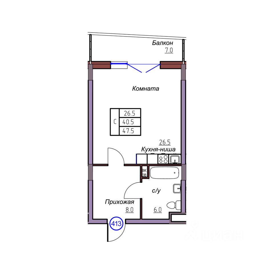 Общая площадь47,5 м²
