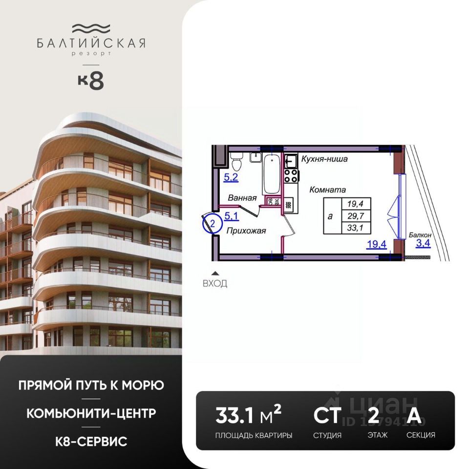 Балтийская Резорт — новый гостиничный комплекс премиального формата в Светлогорске, созданный для тех, кто выбирает жизнь у моря без компромиссов или инвестиции с быстрой окупаемостью. А может быть все сразу. Первый в Светлогорске прямой и комфортный спуск к морю, без перепадов высоты, для тех, кто не любит кардио нагрузки и лестницы. Собственная экосистема сервиса — здесь каждый день напоминает об отдыхе, даже если вы приехали всего на выходные. Главная особенность комплекса — масштабная инфраструктура уровня курорта. Первое место в Светлогорске где можно задержаться до полуночи. В составе Балтийская Резорт: • Флагманский СПА-комплекс от создателей "Баден Аква СПА" с бассейном и зонами релакса • Современный фитнес-центр • Бильярд, караоке и ресторан — центр притяжения для отдыха и встреч • Уютные зоны для работы • Прачечная, супермаркет, салон красоты, сервисная компания • ЗАГС и площадки для церемоний в парке, у моря и на кровле • Подземный паркинг, охрана, видеонаблюдение Жить в Балтийская Резорт — значит иметь собственный мир у моря, где быт решается автоматически, а время принадлежит вам. Инвестиционная привлекательность. Балтийская Резорт — это не только премиальный уровень жизни, но и сильная инвестиционная модель: • Проект расположен в топовой туристической зоне Светлогорска — высокий стабильный спрос на аренду круглый год. • Апартаменты могут передаваться в управление — полностью пассивный доход без вашего участия. • Капитализация проекта по прогнозам — 130%+ к вводу в эксплуатацию. • Стартовая цена существенно ниже будущей рыночной стоимости — редкая возможность зайти "на старте" в один из самых сильных проектов региона. Качество и стандарты: • Потолки 3 метра, большие окна, продуманная архитектура • Апартаменты в отделке White box в подарок и возможностью передачи в управление • Собственная управляющая компания и сервис под ключ • ДДУ, ФЗ-214 • Ипотека, рассрочка, 100% оплата Звоните — проведём презентацию, подберём планировку и рассчитаем инвестиционный потенциал вашей покупки. Проектная декларация размещена на сайте наш.дом.рф Предложение ограничено. *Не является публичной офертой. Указанные цифры являются прогнозными. Расчет выполнен по состоянию на декабрь 2025. Реальная доходность может отличаться от расчетной и зависит от множества факторов, включая рыночную конъюнктуру, расходы на содержание объекта (налоги, ремонт, коммунальные платежи), а также возможные периоды простоя. Данный расчет не является гарантированным и не представляет собой финансовую рекомендацию.