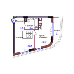 Общая площадь49,6 м²