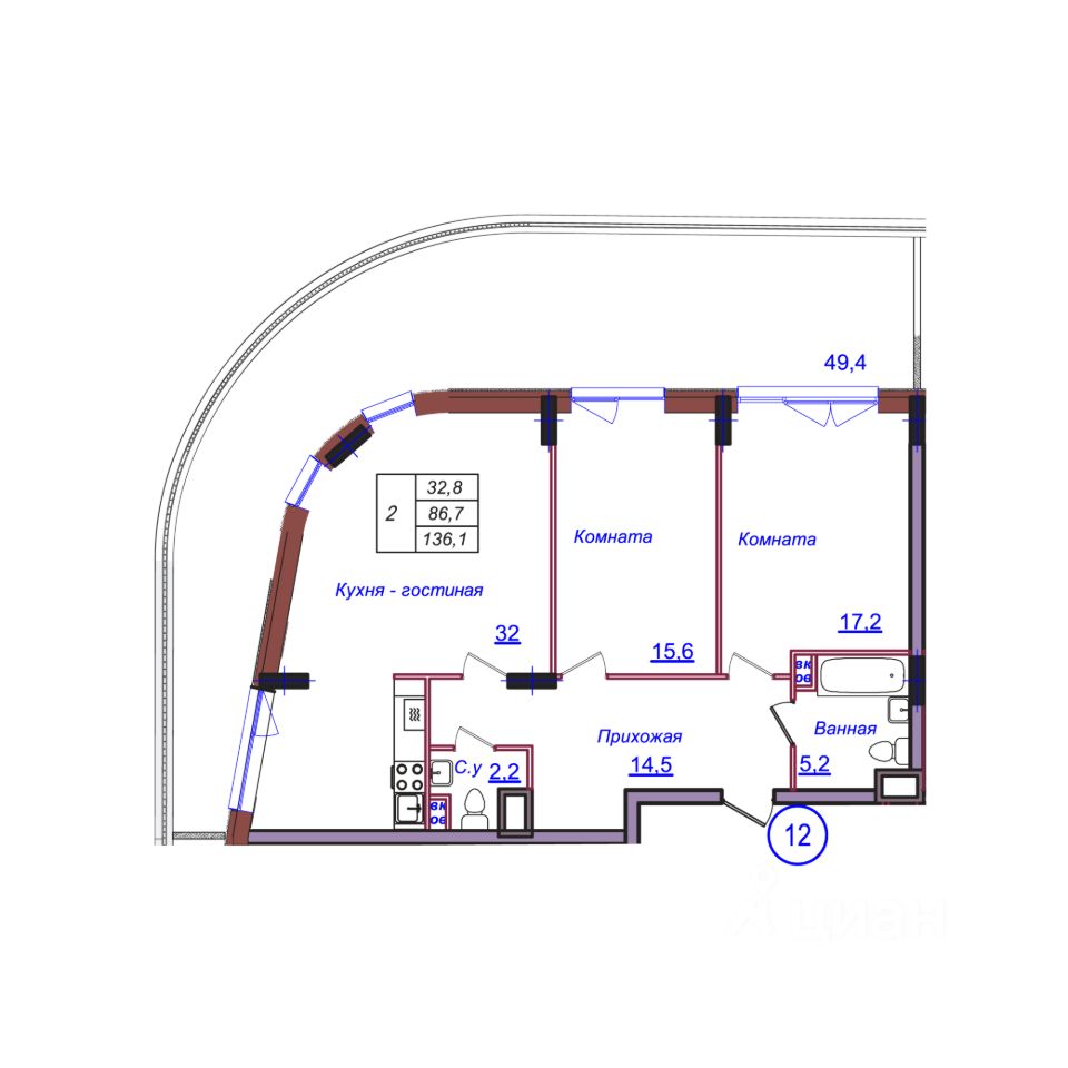 Общая площадь136,1 м²