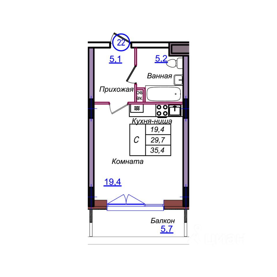 Общая площадь35,4 м²