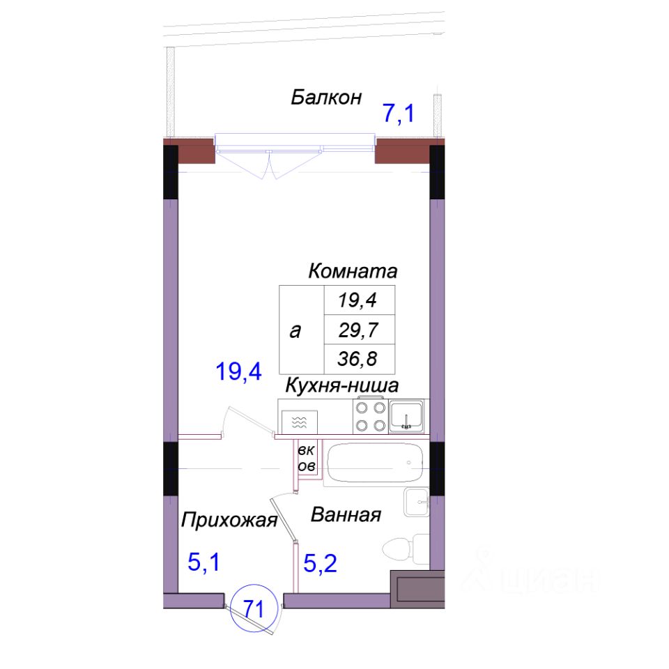 Общая площадь36,8 м²
