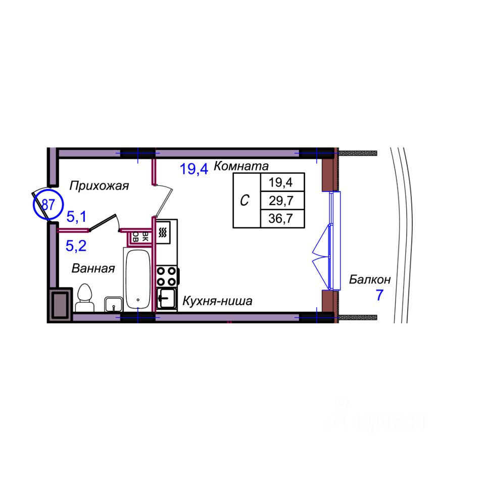 Общая площадь36,7 м²