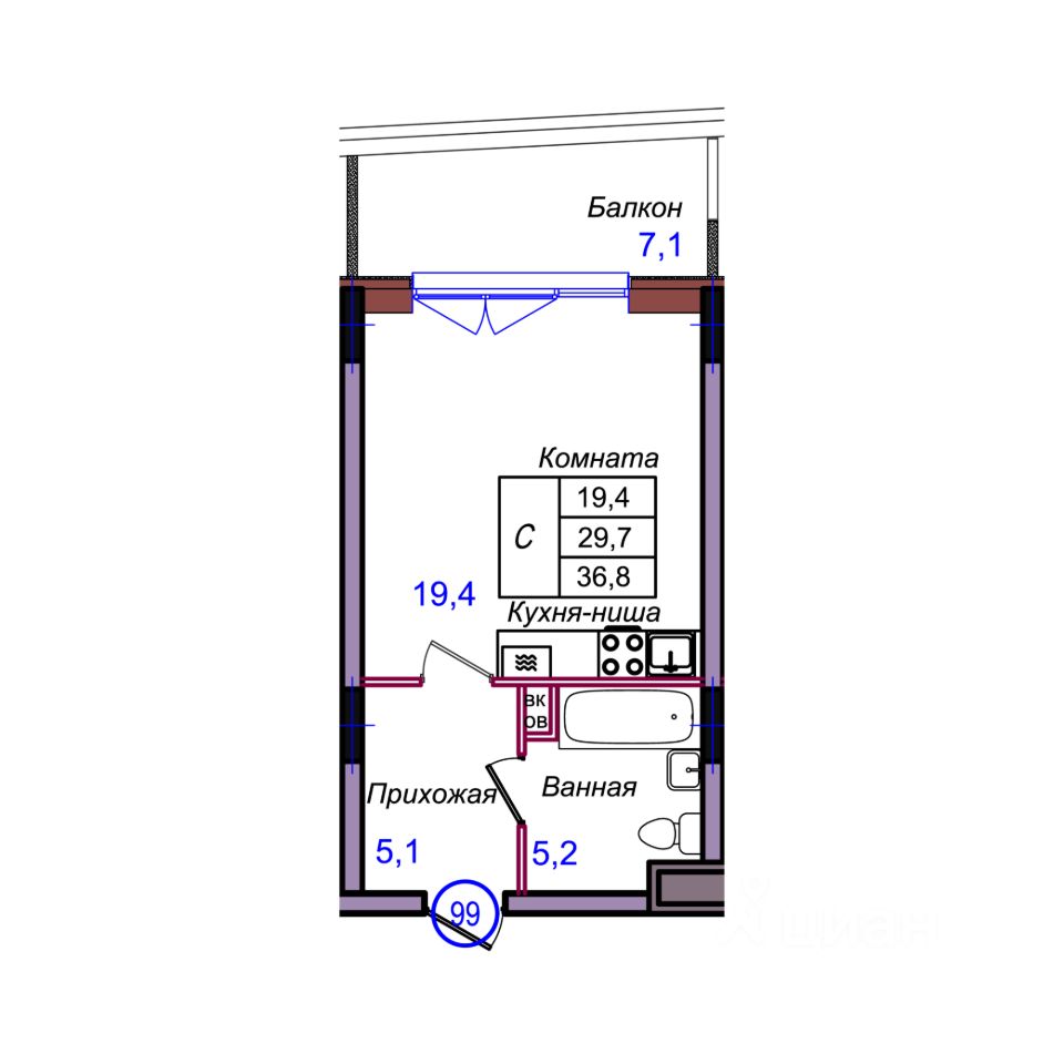 Общая площадь36,8 м²