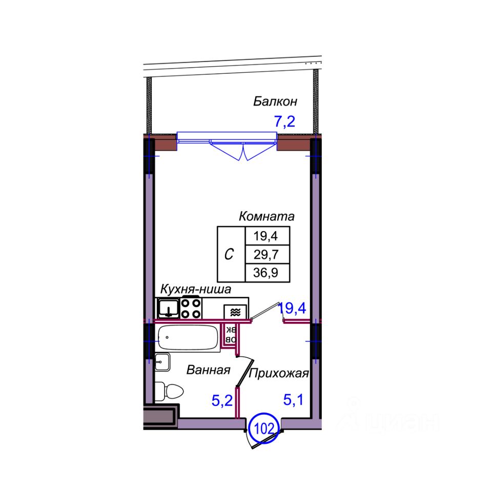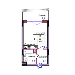 Общая площадь36,9 м²