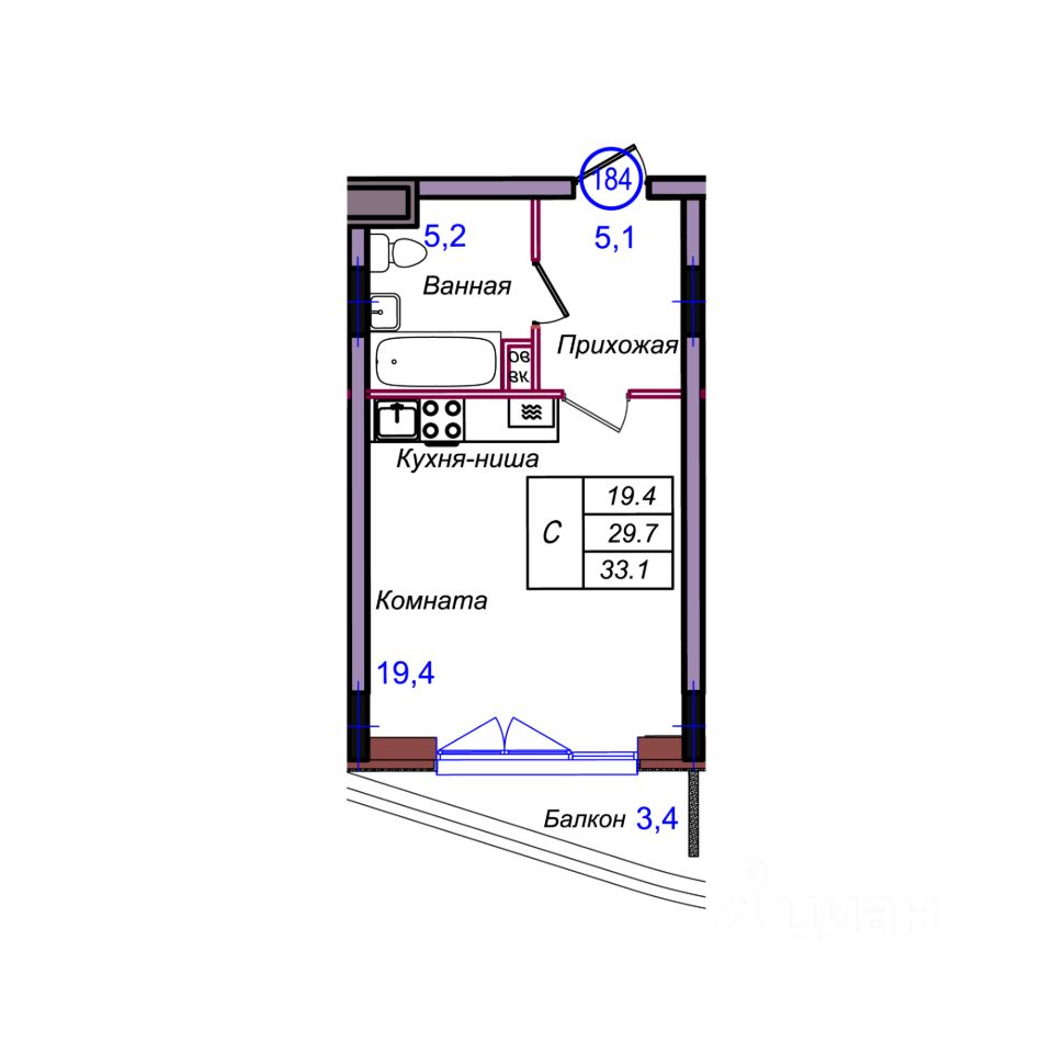 Общая площадь33,1 м²