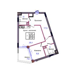 Общая площадь67,4 м²