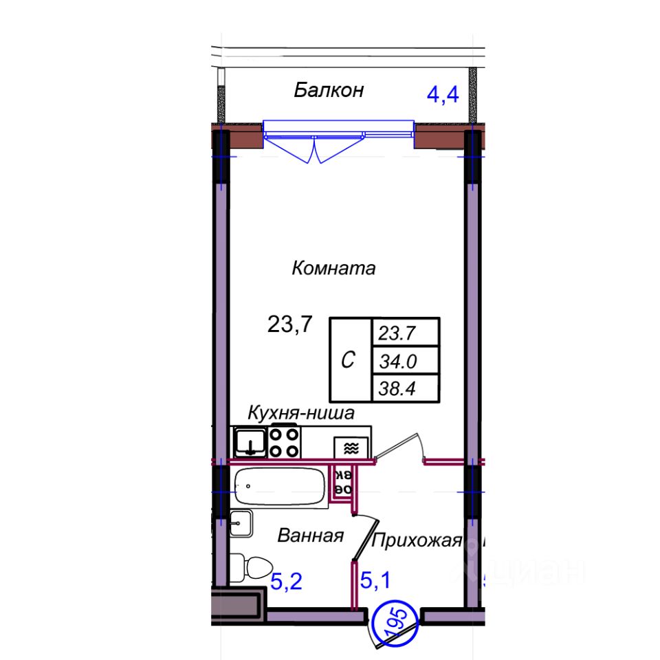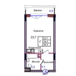 Общая площадь38,4 м²