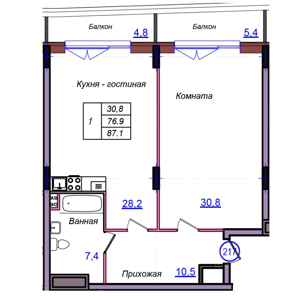 Общая площадь87,1 м²