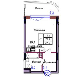 Общая площадь37 м²