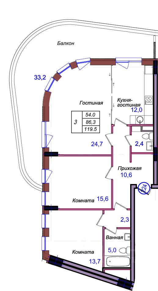 Общая площадь119,5 м²