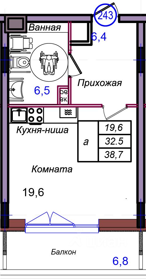 Общая площадь38,7 м²