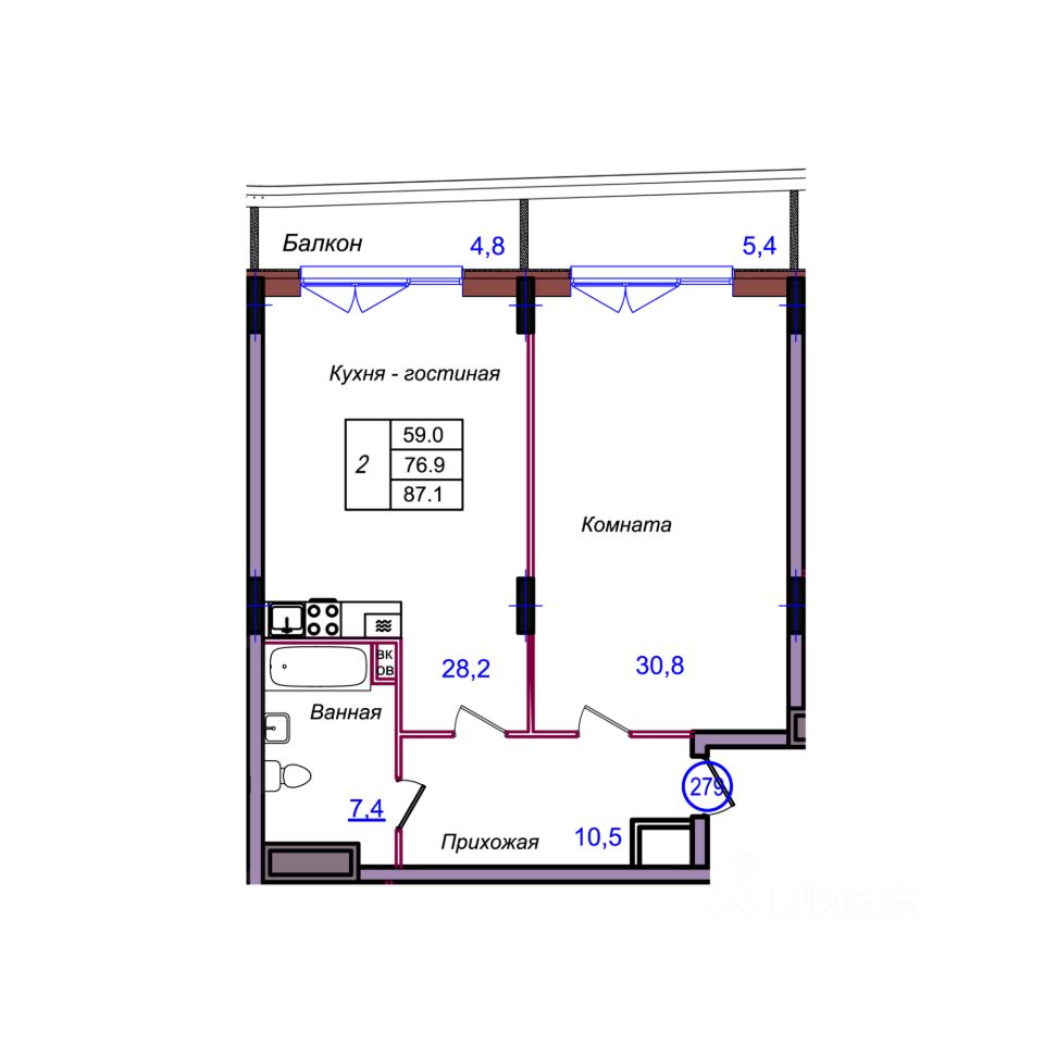 Общая площадь87,1 м²