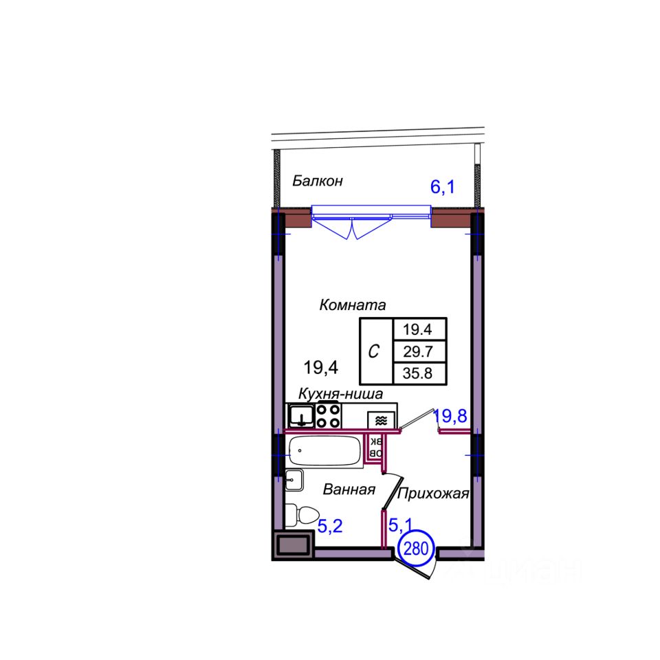 Общая площадь35,8 м²