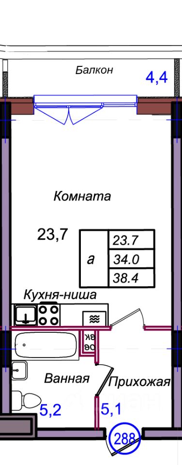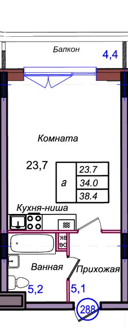Общая площадь38,4 м²