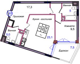 Жилая площадь9,5 м²