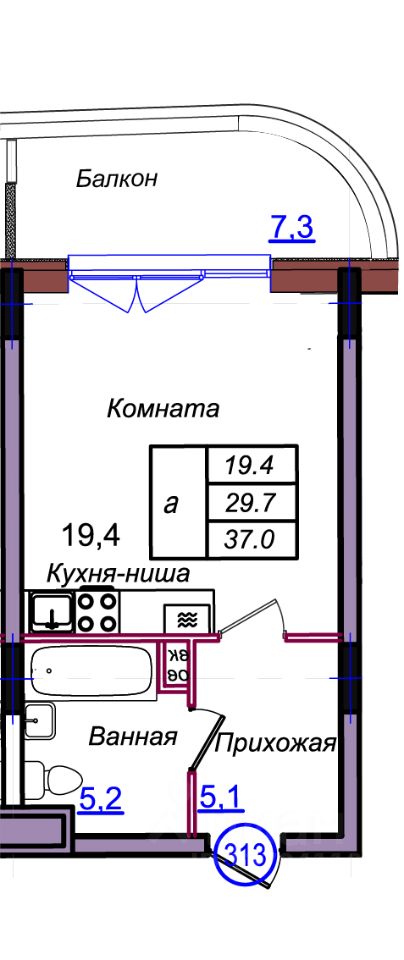 Общая площадь37 м²