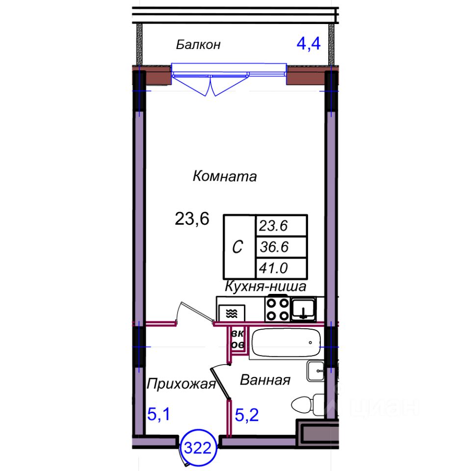 Общая площадь41 м²