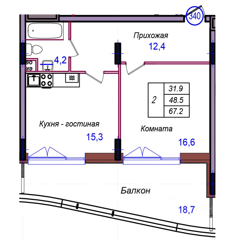 Общая площадь67,2 м²