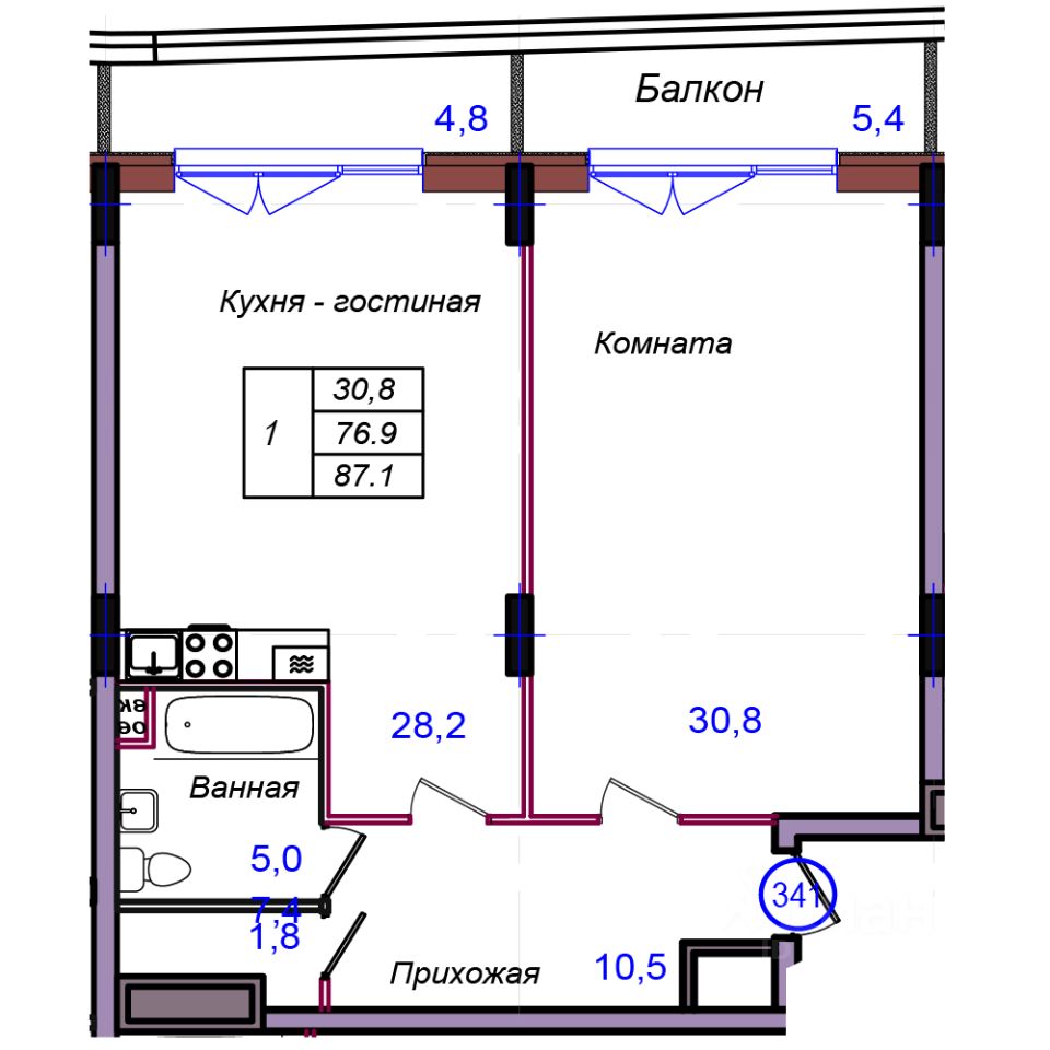 Общая площадь87,1 м²