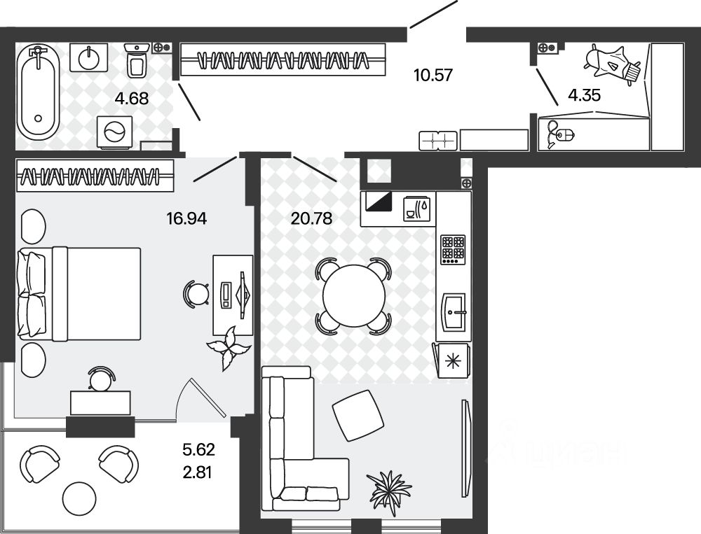 16,9 м²