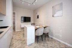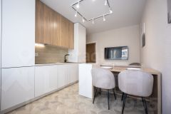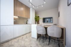 Просторная однокомнатная квартира в Зеленоградске расположена в современном жилом комплексе на побережье Балтийского моря. Общая площадь 42.6 м² включает функциональную планировку с изолированной кухней 12 м², совмещенным санузлом с душевой кабиной и стиральной машиной, а также гардеробную зону в прихожей. Квартира полностью готова к проживанию: выполнен качественный ремонт с использованием керамогранита в санузле и ламината в жилых помещениях, установлена новая бытовая техника (холодильник, плита, вытяжка, посудомоечная машина), сохранившая заводскую упаковку. Панорамные окна с энергосберегающими стеклопакетами выходят на тихий двор с ландшафтным озеленением.