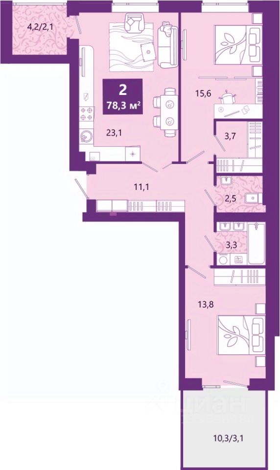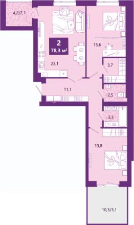 Двухкомнатная квартира с предчистовой отделкой в ЖК "Сиреневый бульвар" на 2 этаже. Общая площадь: 79.2 кв.м., жилая: 29.4 кв.м., площадь просторной кухни-столовой: 23.1 кв.м. Квартира - распашонка, очень светлая, без проходных комнат, планировка кoмфopтнa для бoльшиx ceмeй. В квартире один балкон, один раздельный санузел. Наличие в квартире террасы дает возможность для создания зон отдыха в кругу семьи и друзей. Высота потолков 2.7 м.