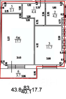 Общая площадь квартиры 40,1 кв. м.