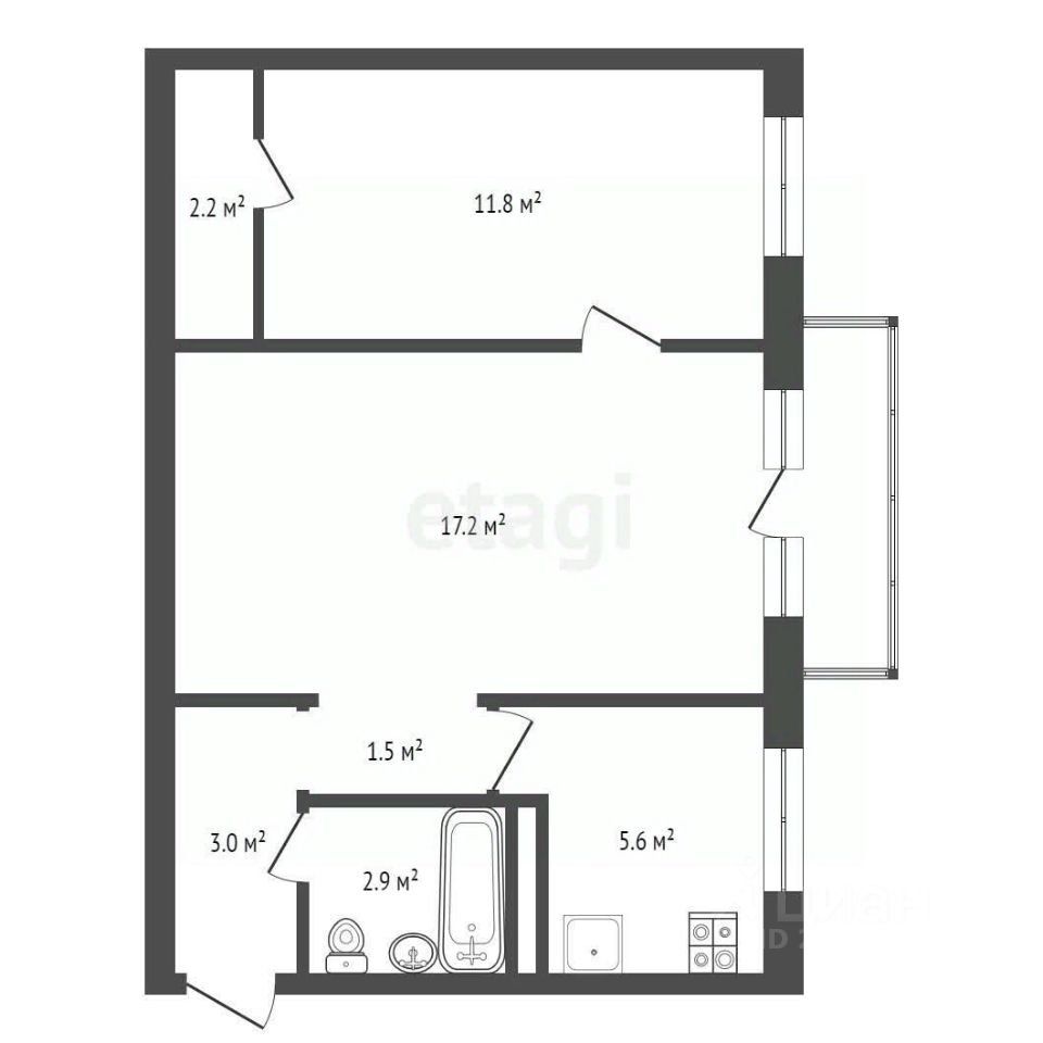 Площадь комнат составляет 17,2 м² и 11,8 м², а также имеется гардеробная (2,2 м²) — это настоящая находка для современных жителей, ценящих порядок и функциональность.