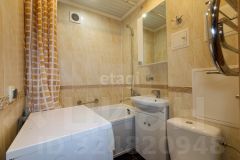 Смежный санузел отделан стильной керамической плиткой, что обеспечивает не только эстетичный вид, но и легкость в уходе.