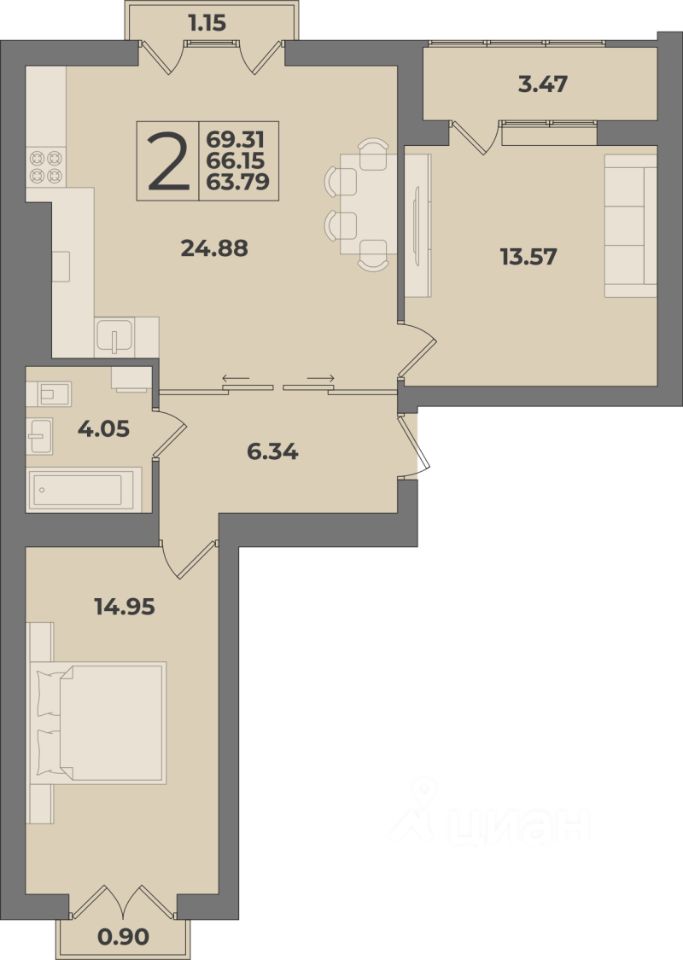 Продаётся 2-комнатная квартира в сданном доме (Дом 3 (1 этап)), срок сдачи: IV-кв. 2025, общей площадью 69.31 кв.м., на 9 этаже. Новый жилой комплекс "Суздальский-3" от Группы компаний "Модуль-Стройград" расположен в Ленинградском районе Калининграда на улице Суздальской.