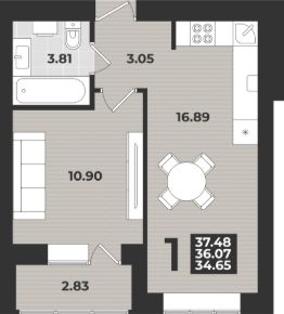 Продаётся 1-комнатная квартира в строящемся доме (Дом 3 (1 этап)), срок сдачи: II-кв. 2026, общей площадью 37.48 кв.м., на 2 этаже. Новый жилой комплекс "11 Мая" от застройщика "ГК Модуль-Стройград" расположен по адресу: г. Калининград, улица Согласия.
