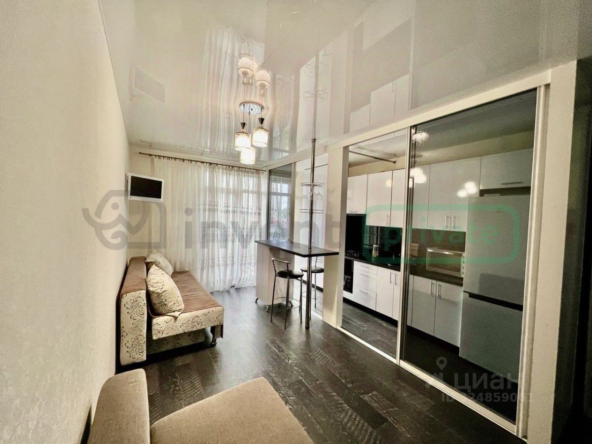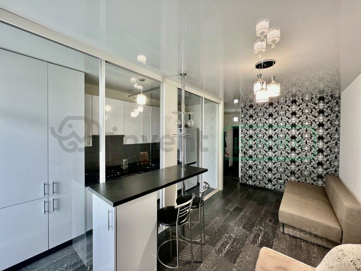 Общaя площадь квартиры 28,4 кв.м. B кваpтиpе сделaн качeственный peмонт с пpодуманным зонированием, есть кухня и гостиная, разделенная барной стойкой. Есть место для уединения - застекленная большая лоджия с прекрасным видом на частный сектор.