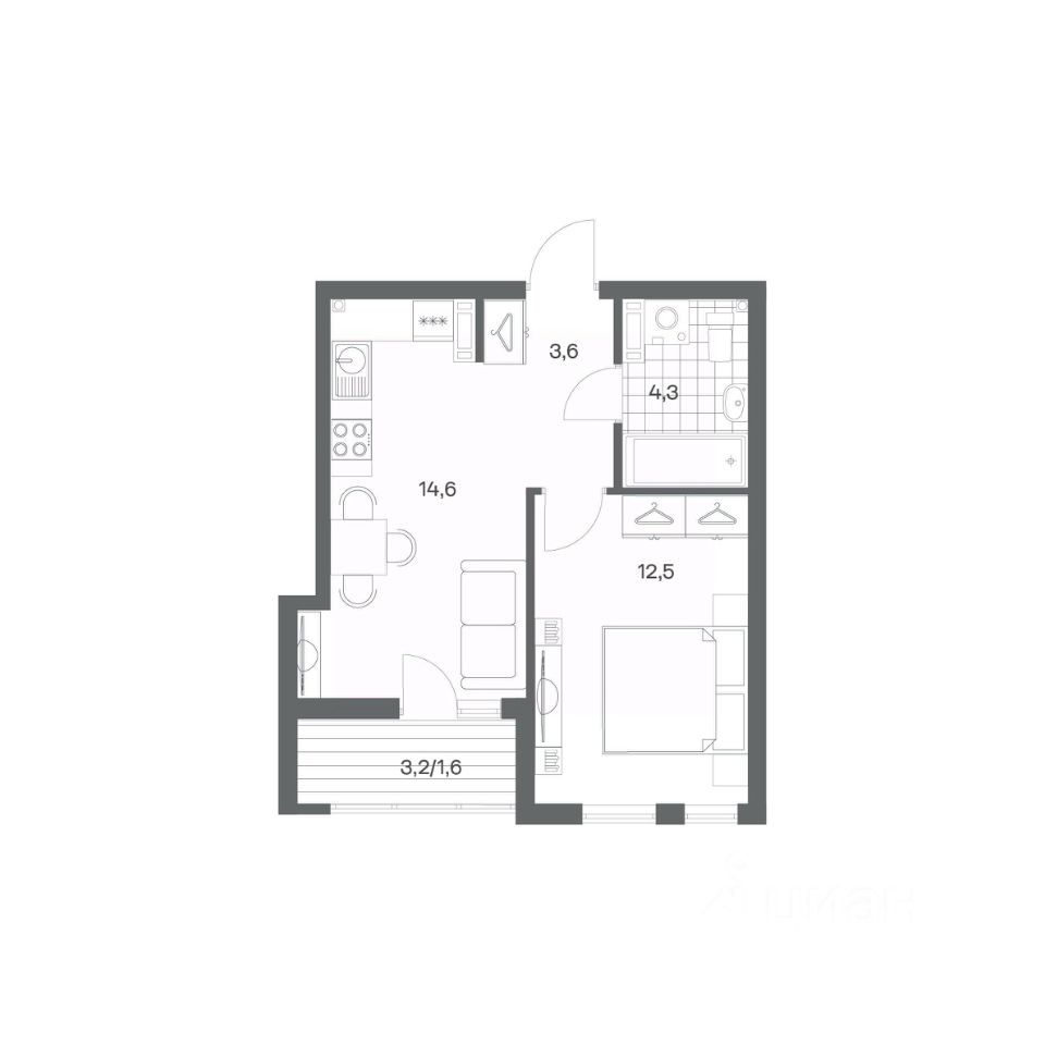 в Гагарина 30 от компании ГК "ТРЕСТ". Площадь кухни 14.6 м². Жилой комплекс комфорт-класса "Гагарина 30" расположен в Ленинградском районе Калининграда на улице Юрия Гагарина. Жилой комплекс включает в себя три корпуса высотой 9-18 этажей. Срок сдачи намечен на 1 квартал 2028 года.
