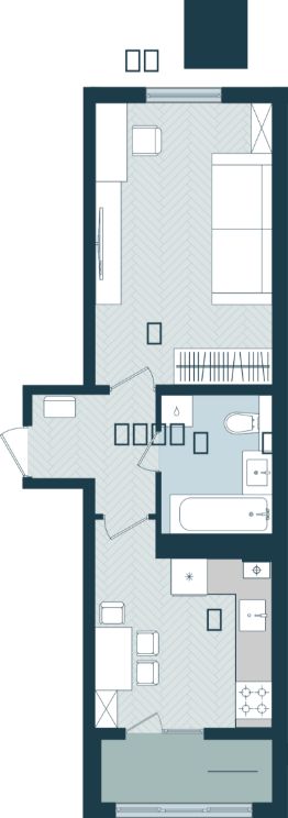 Продаётся 1-комнатная квартира в строящемся доме (Дом 34), срок сдачи: IV-кв. 2026, общей площадью 44.7 кв.м., на 3 этаже.