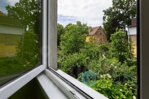 Утепленный/остекленный балкон который выходит из кухни, так же с видом на сад.