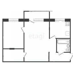 Общая площадь квартиры - 43,8 кв.м. ПЛЮС балкон 0,9 кв.м.